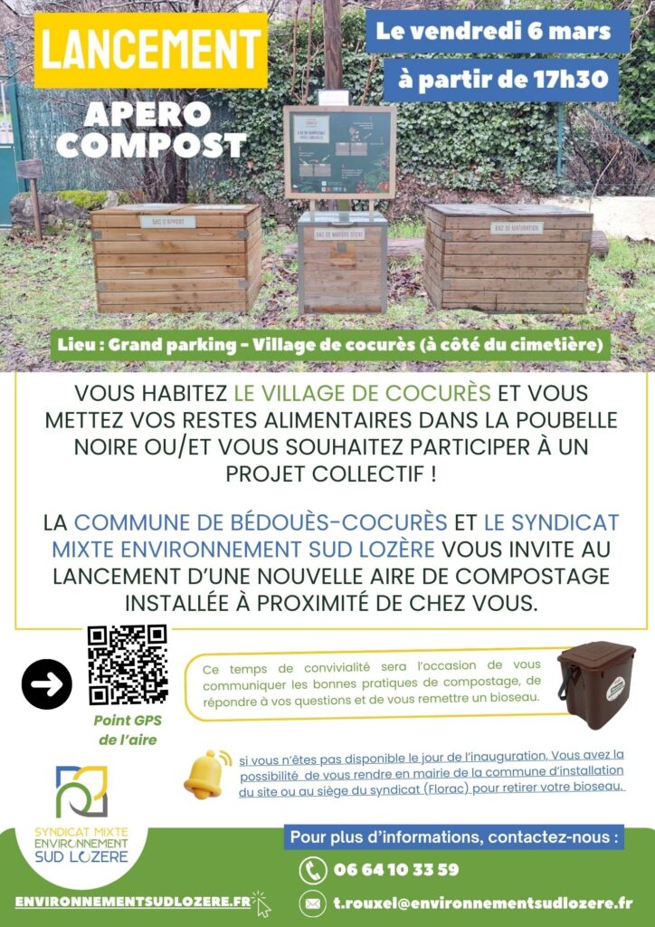 Le vendredi 6 mars Ă partir de 17h30 aura lieu le lancement d’une nouvelle aire de compostage partagĂ© sur la Commune de BĂ©douès Cocurès.
