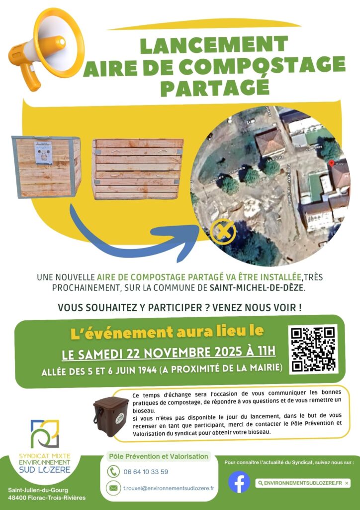 Le samedi 22 novembre à 11h aura lieu le lancement d’une nouvelle aire de compostage partagé sur la Commune de Saint-Michel-de-Dèze.
