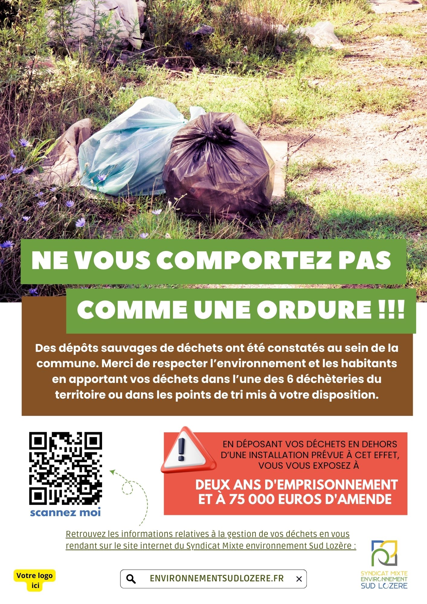 AFFICHE DS - NE VOUS COMPORTEZ PAS COMME UNE ORDURE (Avec Logo Commune à insérer)