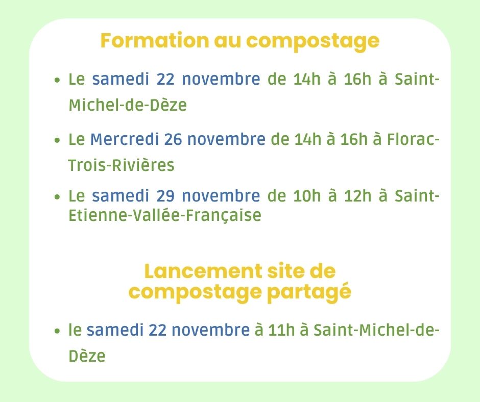 Pour participer à l’une des formations, merci de vous inscrire via le lien suivant : https://environnementsudlozere.fr/nos-savoirs-faire/composte-et-broyage/